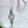 Colar curto em fio de seda torcido na cor preta, com dois anéis de fio de seda, suspensos no centro por uma bela peça de resina na cor branco manchado de caramelo. Fechamento do colar é na cor pratapreta.