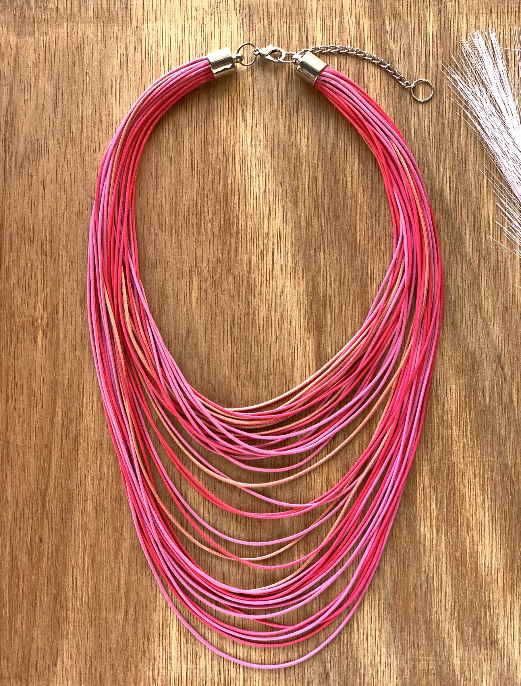 Adicione um toque vibrante ao seu visual com este colar médio em fio encerado “mil voltas”. Com comprimentos variados, ele é uma celebração das cores: Pink, rosa claro e salmão se entrelaçam de maneira harmoniosa, criando uma peça única e cheia de personalidade.